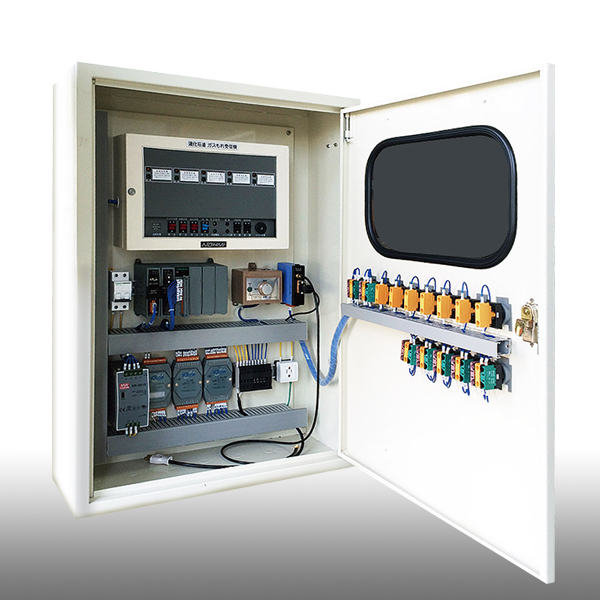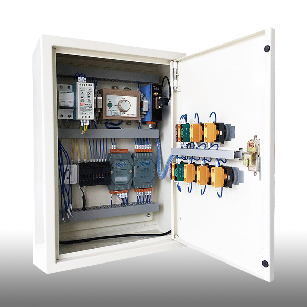 PLC可程式控制器:在插槽上可以安裝高效能模組。利用事先安裝於PLC上的軟體程式,抓取並匯整各測點資料判讀資料一方面發出應變指令動作。